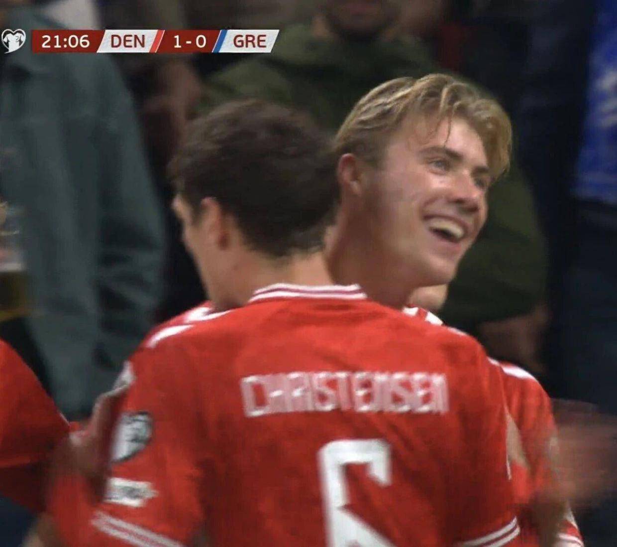 值得一提的是,踢了70分钟的霍伊伦德,只有1次射门,就取得了进球,转化率极高。丹麦的胜利使他们保持小组头名,但与苏格兰队积分相同。在苏格兰队阵中,有另一名曾经与霍伊伦德有过类似经历的球员,麦克托米内同样也在本轮世预赛破门。